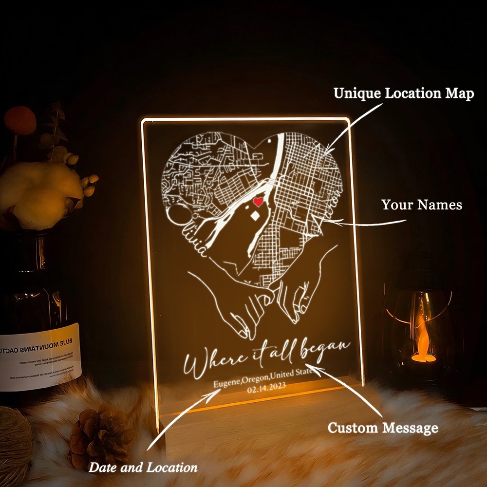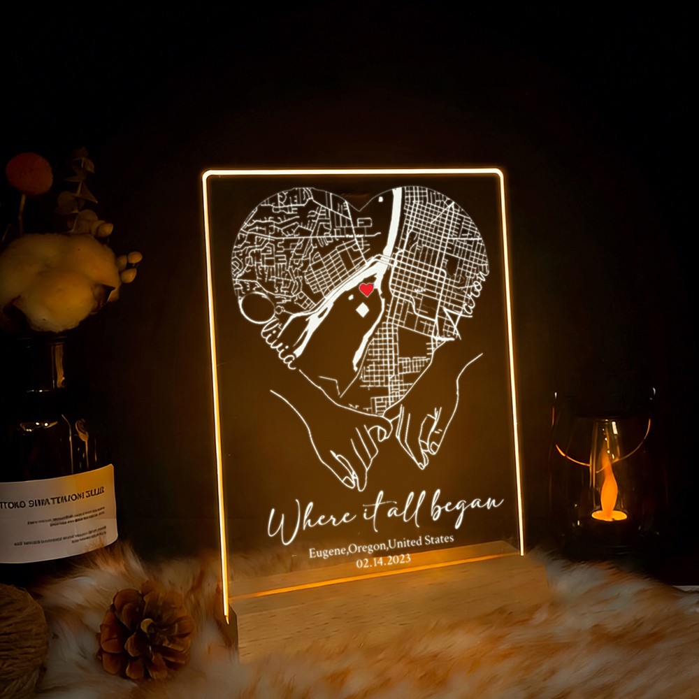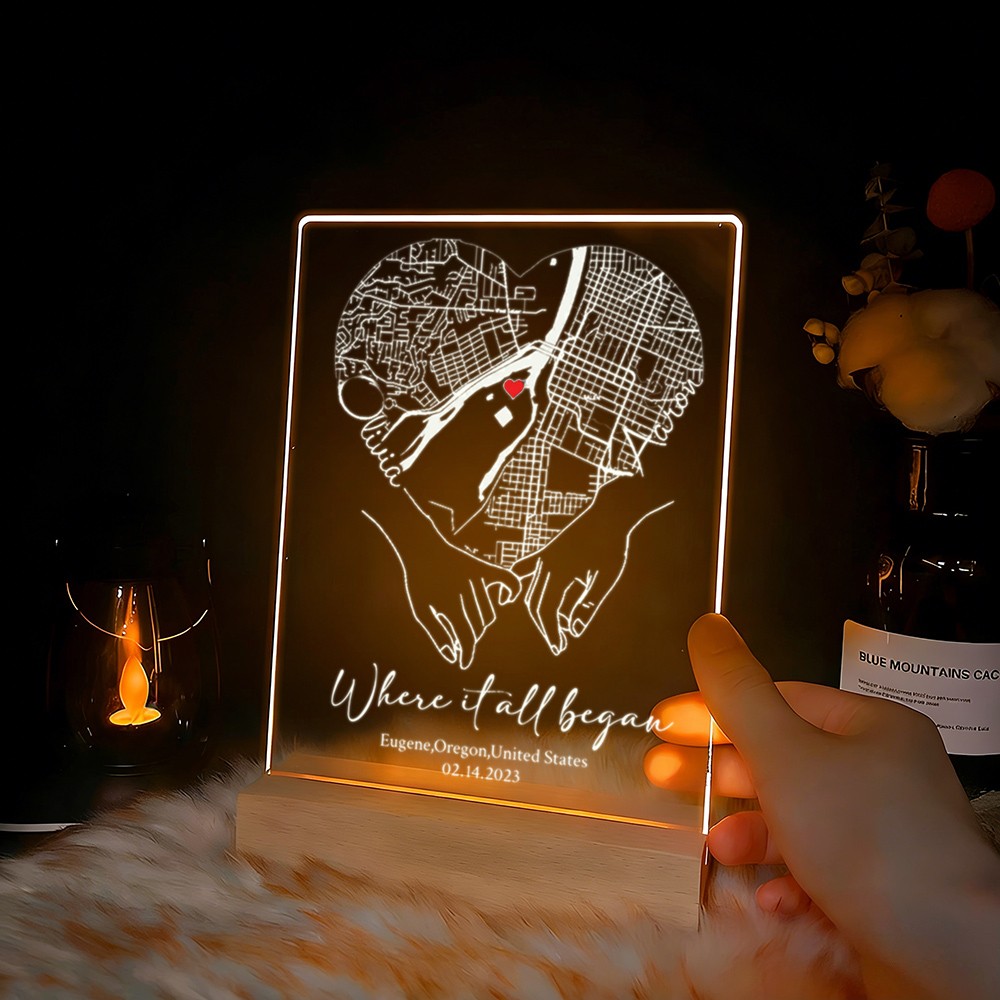 Custom Where It All Began Acrylic Map Night Light for Couple