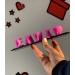 Default uppercase letters. (Don't worry about the different lengths of the two names, we will make the extra letters into hearts for you.)