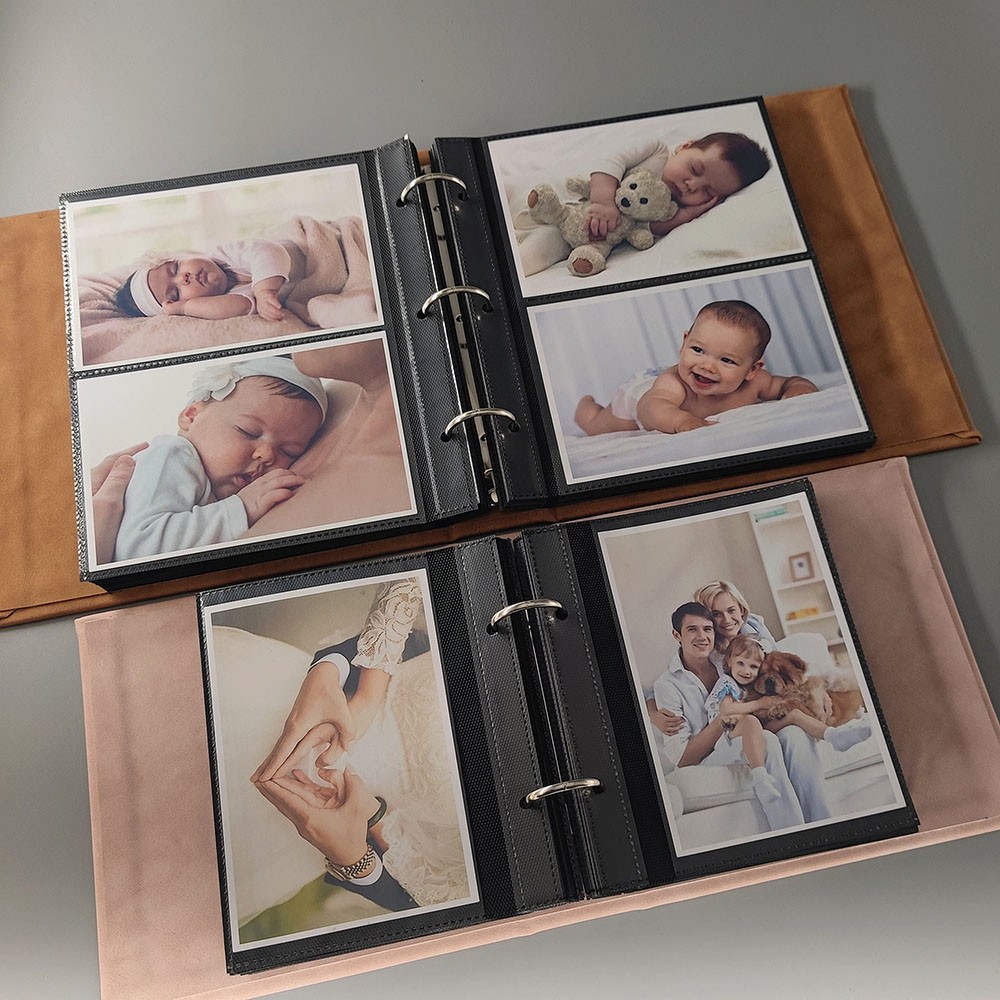 Amazing our hard cover ring binder photo album with your personalized names, date or other text will be great idea for your baby photo album, Family photo album and travel album...