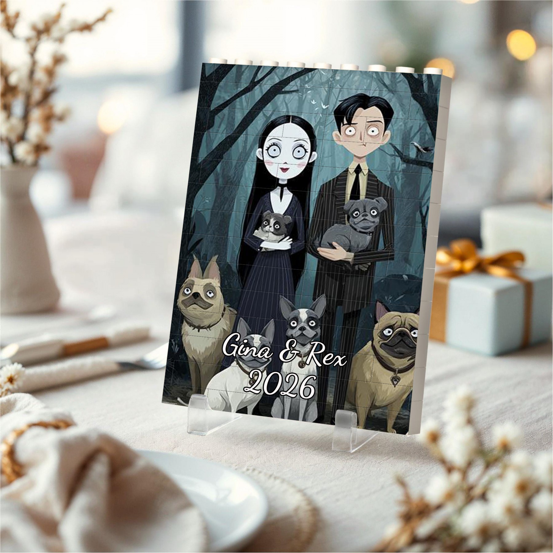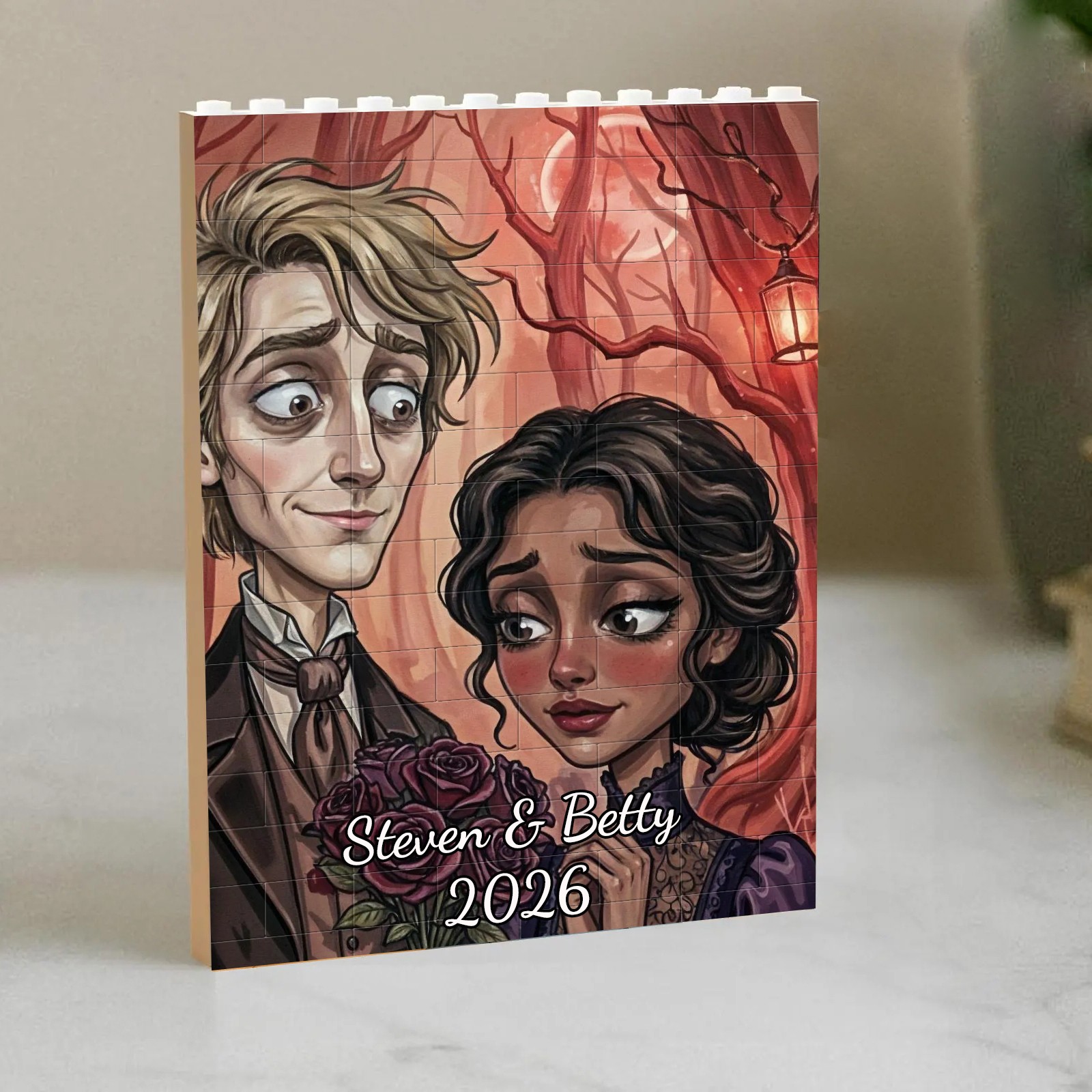 Personalized Map Print Building Brick Puzzle With Gothic Portrait Valentine's Gifts For Her