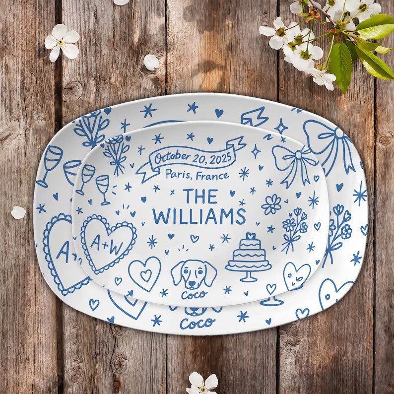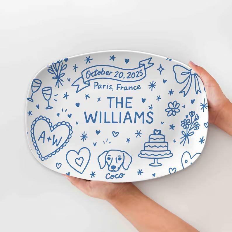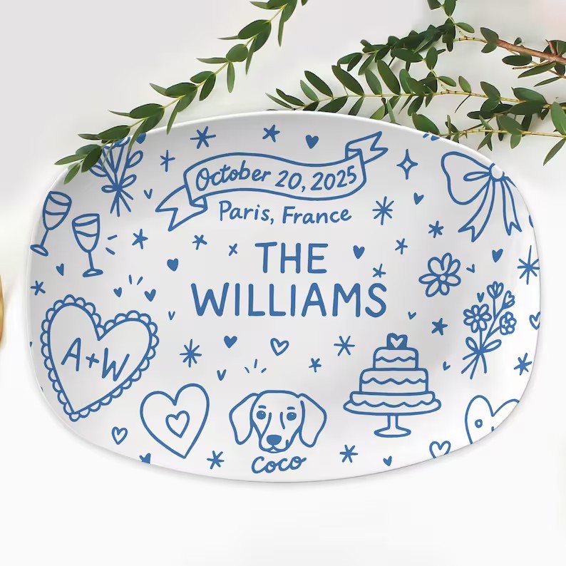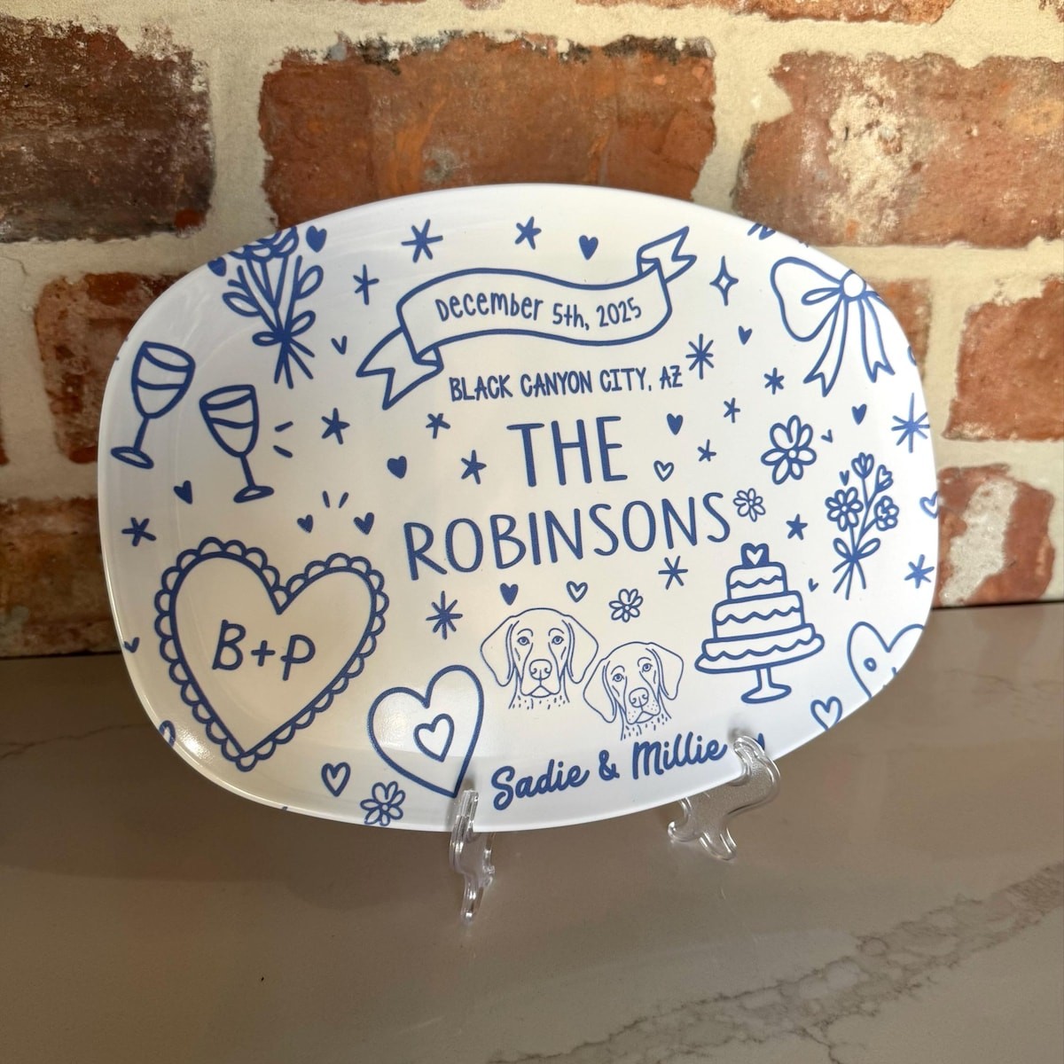Custom Wedding Platter – Personalized Bridal Gift with Names, Date & Location – Unique Keepsake for Bride & Groom