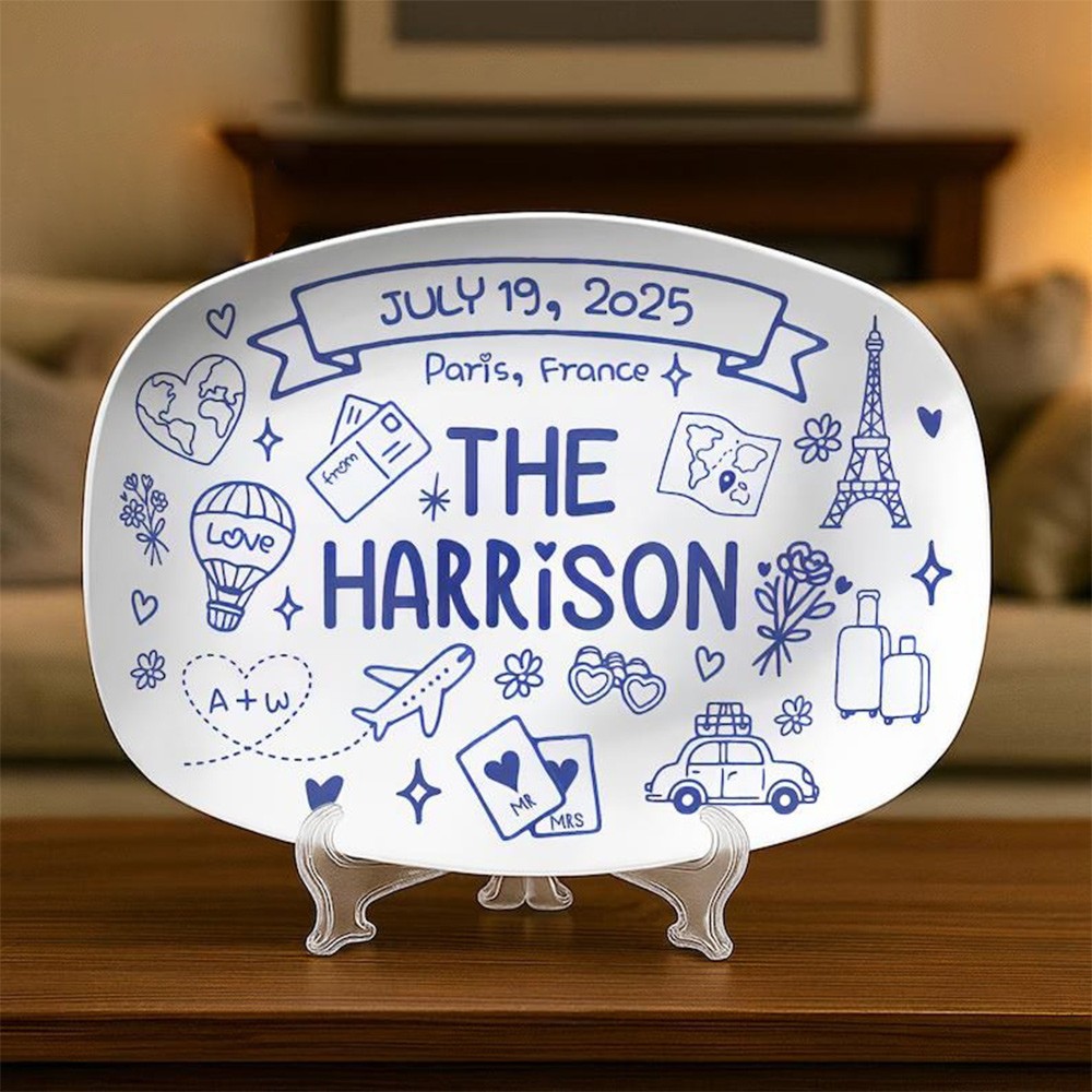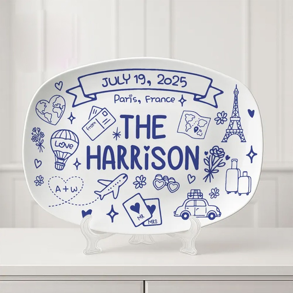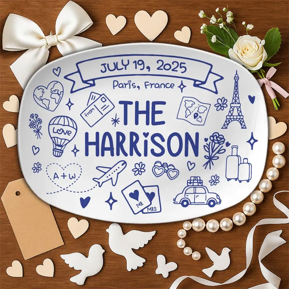 Custom Wedding Platter – Personalized Bridal Gift with Names, Date & Location – Unique Keepsake for Bride & Groom