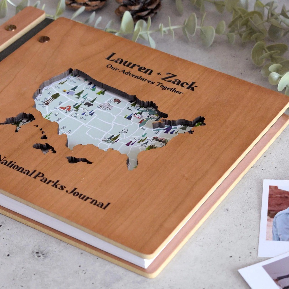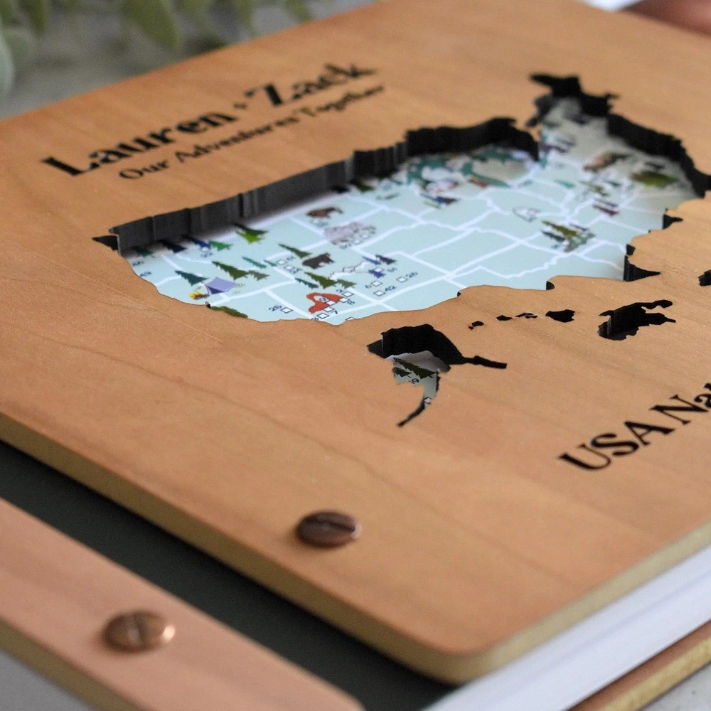 Personalized Wooden Travel Map Adventure Book Scrapbook Couples Travel Album Anniversary Gift Valentine's Gift Christmas Gift