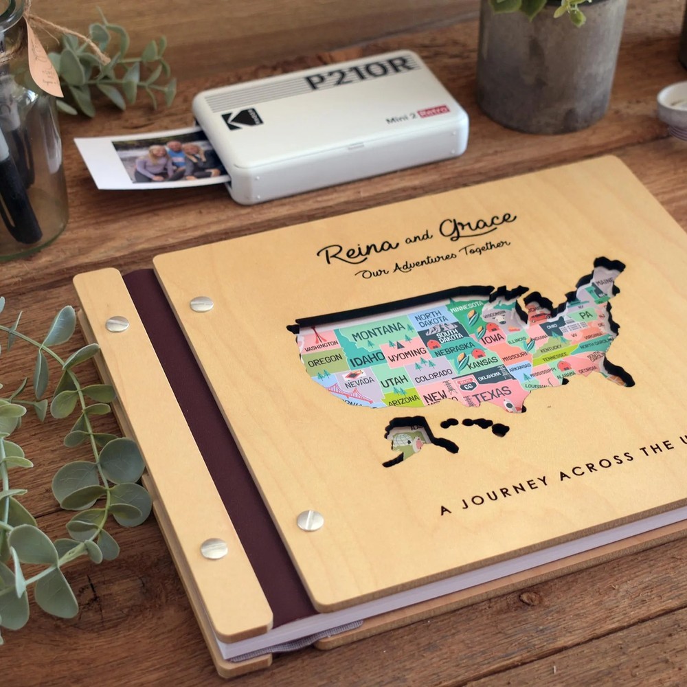 Personalized Wooden Travel Map Adventure Book Scrapbook Couples Travel Album Anniversary Gift Valentine's Gift Christmas Gift